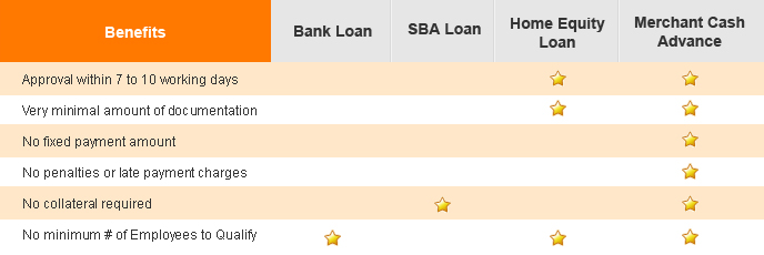 Our merchant cash advance and our bank only products can provide money for your business within 1 business day that you can use on any business related expense. Because we are direct lenders, there is no middleman in our financing process; we can fund your business faster than competing merchant cash advance companies.